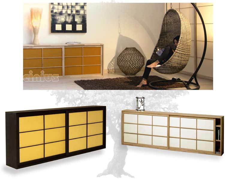 Kommode JACHI (Glück) 4 Schiebetüren aus massiver, stabverleimter Buche; 200x40xh60 cm.