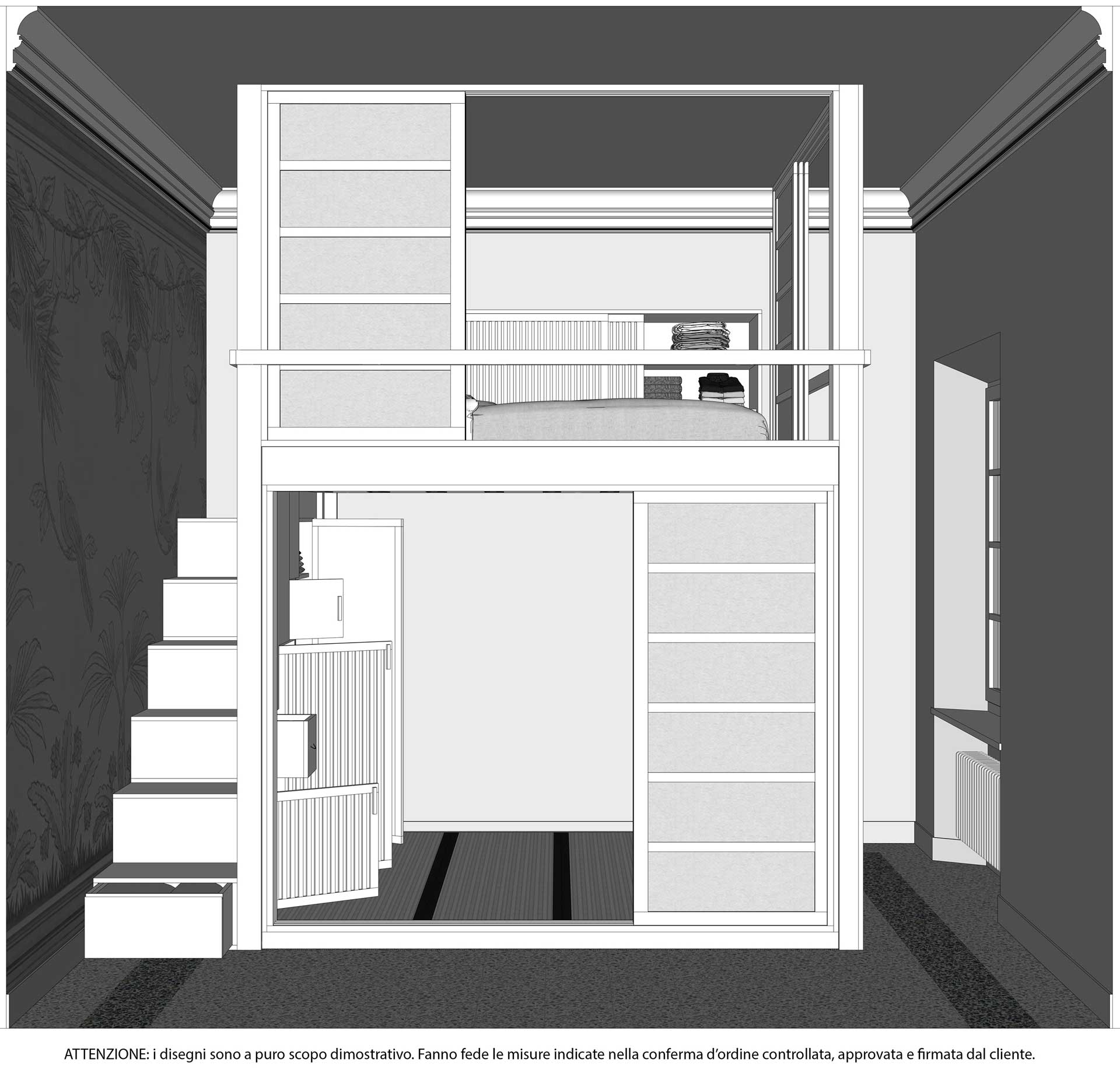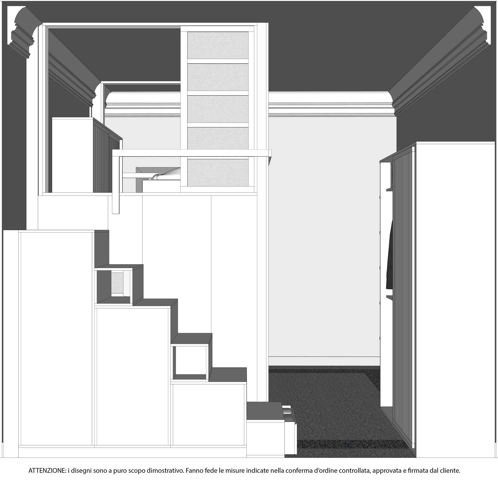 LETTI A SOPPALCO CON CABINA ARMADIO: DISEGNI TECNICI DI PROGETTI REALIZZATI