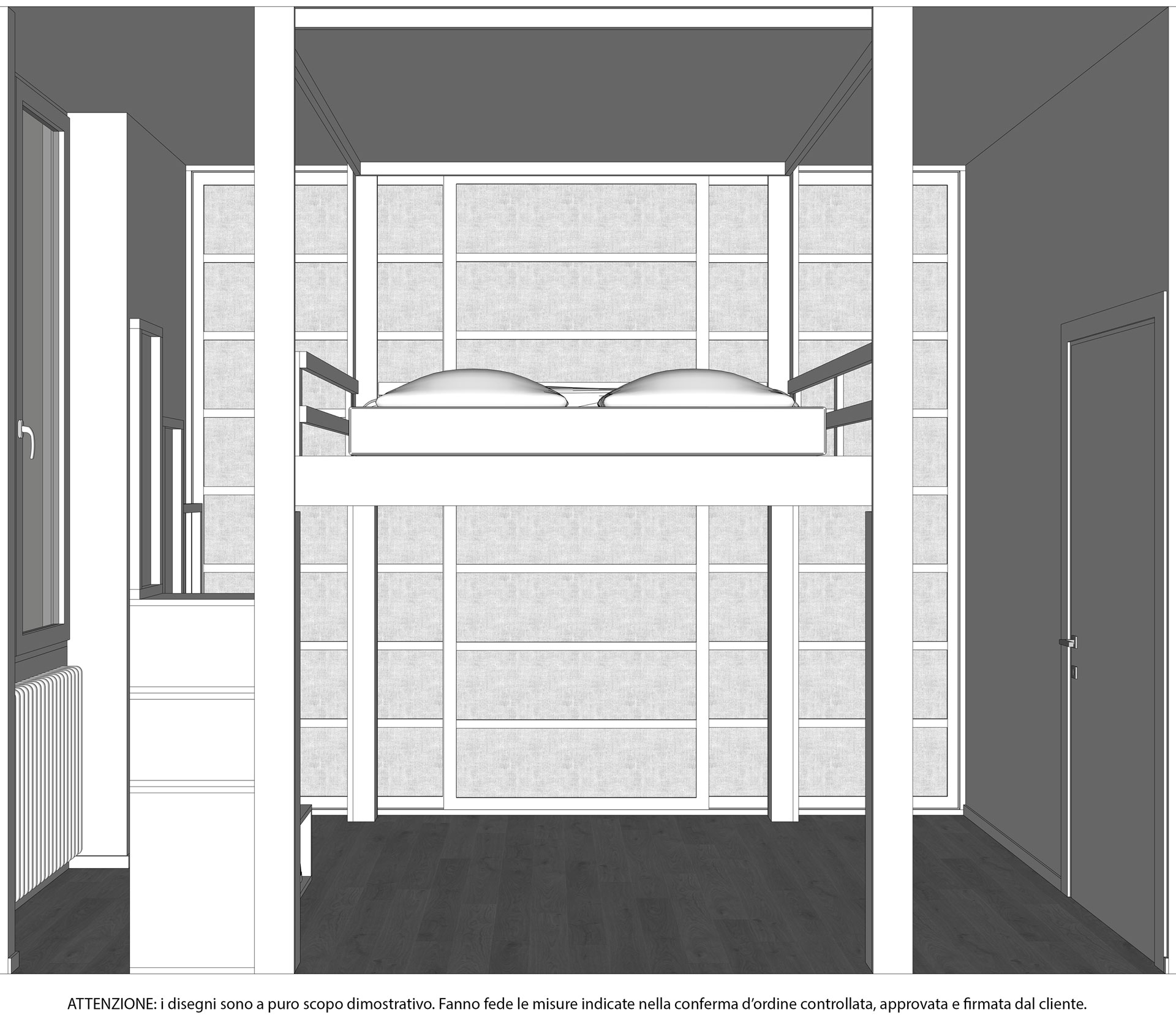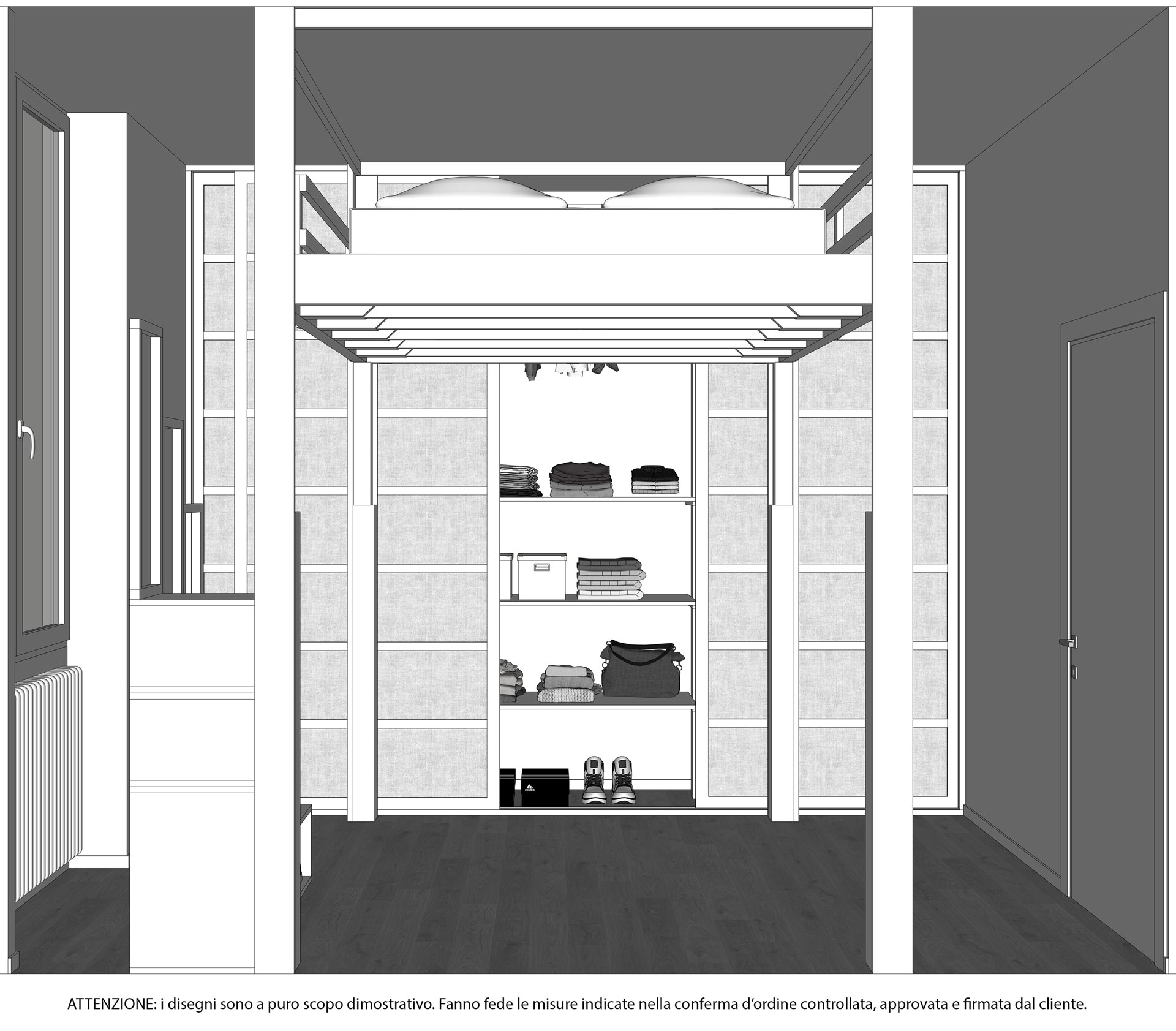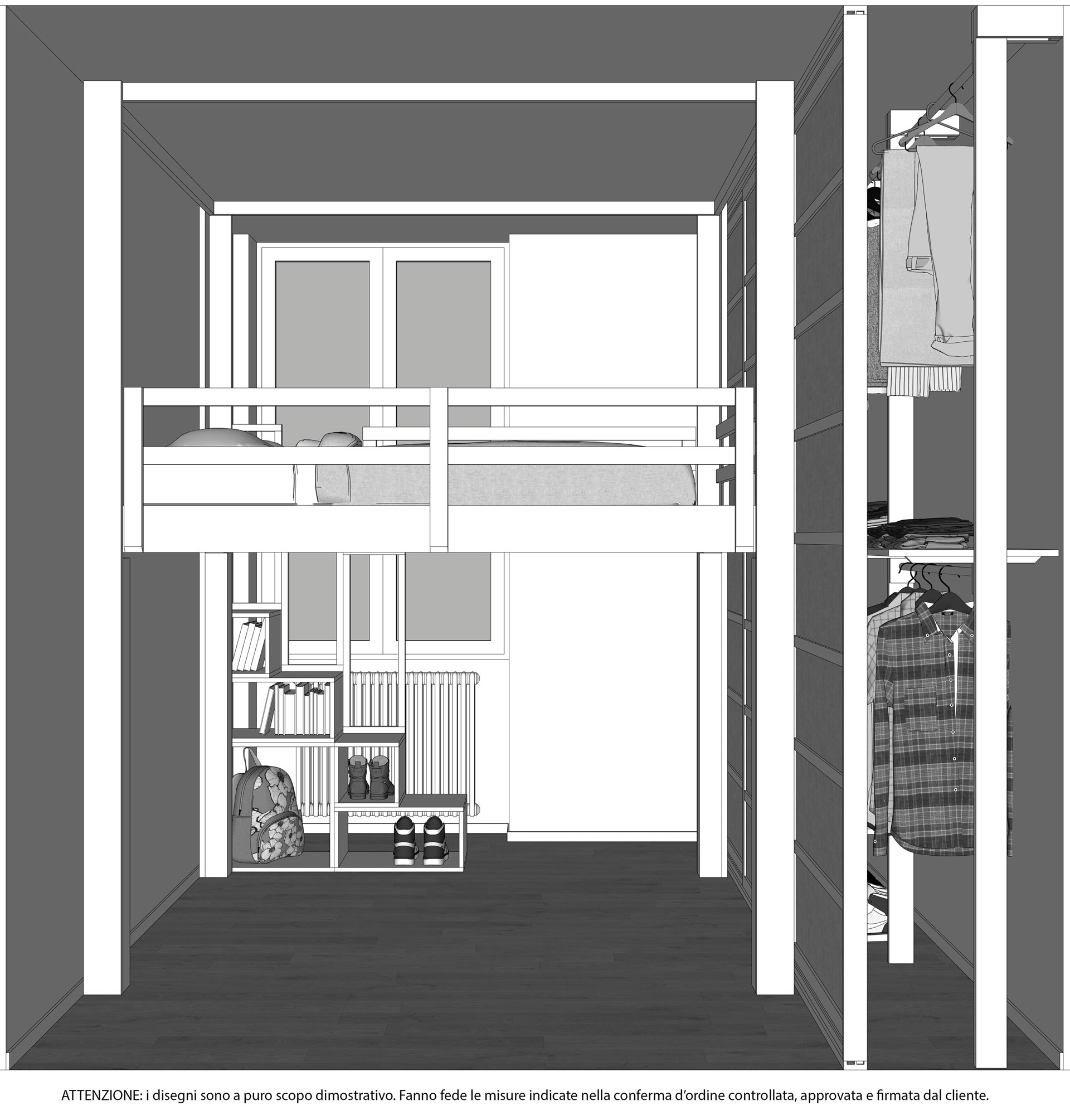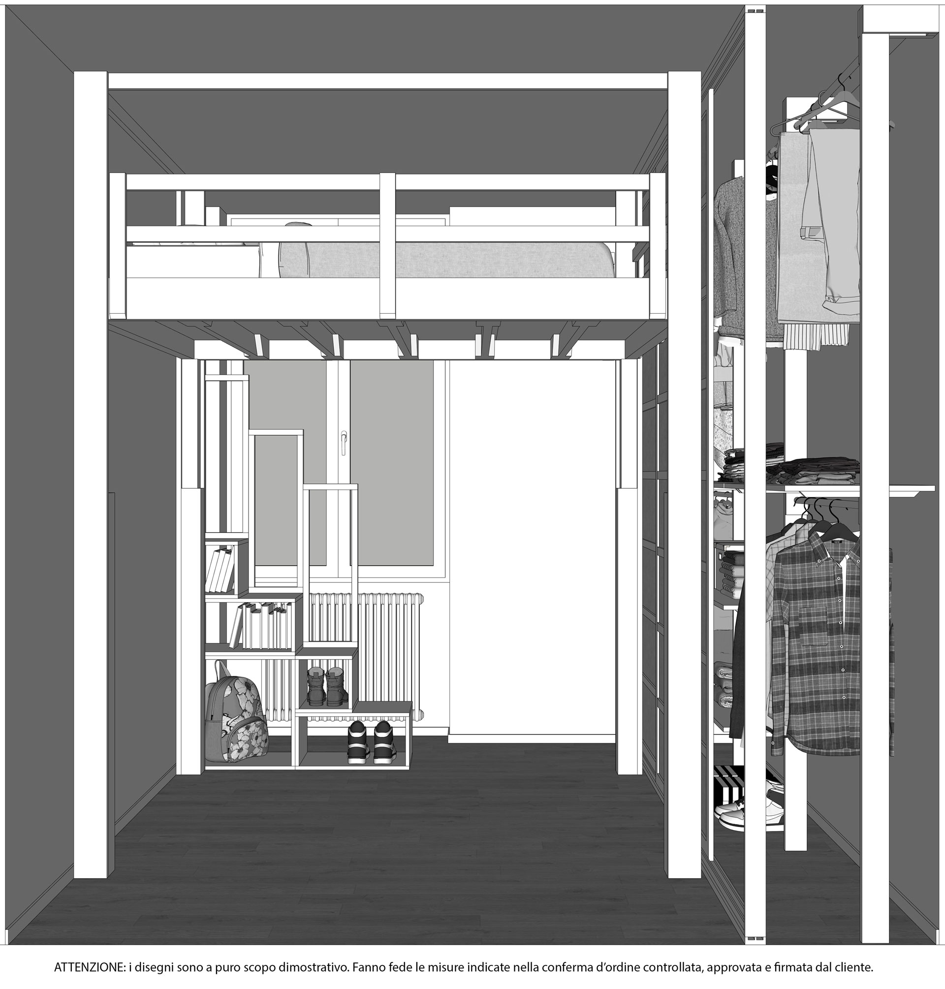 Soppalco Rising regolabile in altezza, Scala a Cubi e Armadio con Ante Scorrevoli